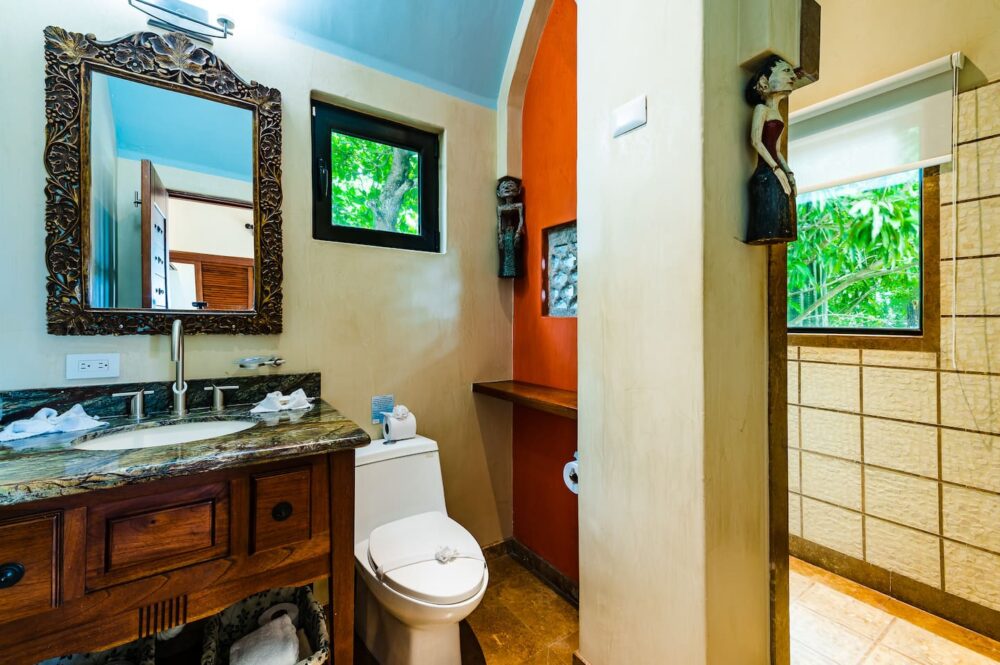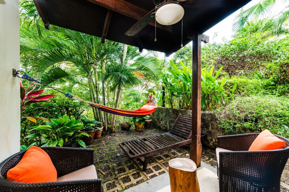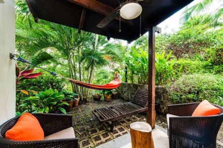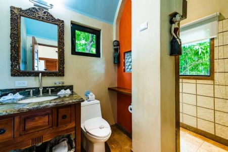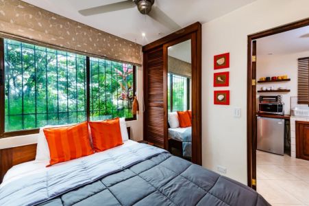 The third bedroom suite is a stand alone building 50 meters from the main house. The suite comes with a sitting area, kitchenette, and queen size bed. Surrounded by tropical gardens, it's the perfect private location for a couple or single looking for a little space while still being close to family and friends. With a nice outdoor seating area you can unwind under the stars or wake up with a coffee while enjoying the hummingbirds and butterflies feeding in the gardens. Please note this "casita" or "apartment" is separate from the main house, still a very nice place to stay just not as luxurious as the house. Do not hesitate to ask us for more details if you have any questions about it.